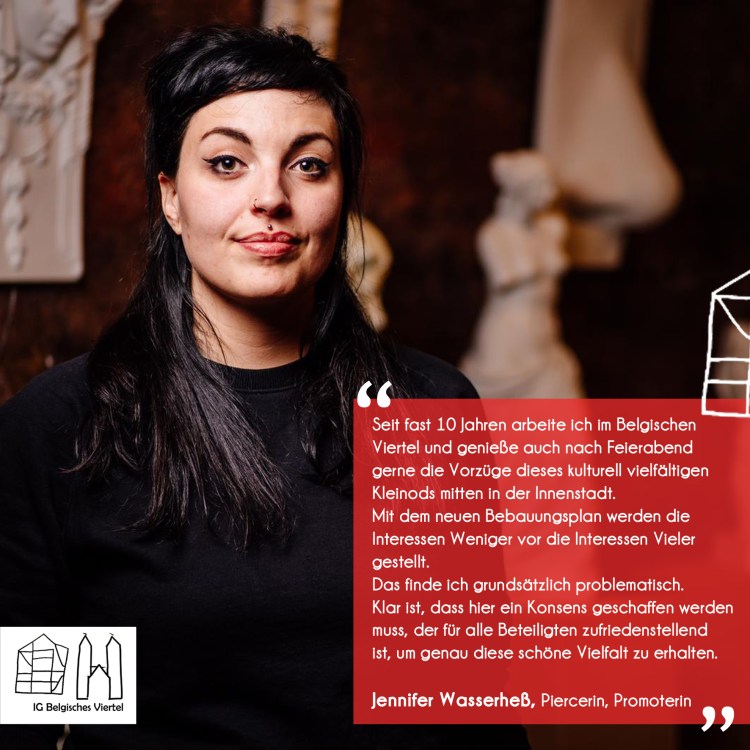 „Seit fast 10 Jahren arbeite ich im Belgischen Viertel und genieße auch nach Feierabend gerne die Vorzüge dieses kulturell vielfältigen Kleinods mitten in der Innenstadt. Mit dem neuen Bebauungsplan werden die Interessen Weniger vor die Interessen Vieler gestellt. Das finde ich grundsätzlich problematisch. Klar ist, dass hier ein Konsens geschaffen werden muss, der für alle Beteiligten zufriedenstellend ist, um genau diese schöne Vielfalt zu erhalten.“